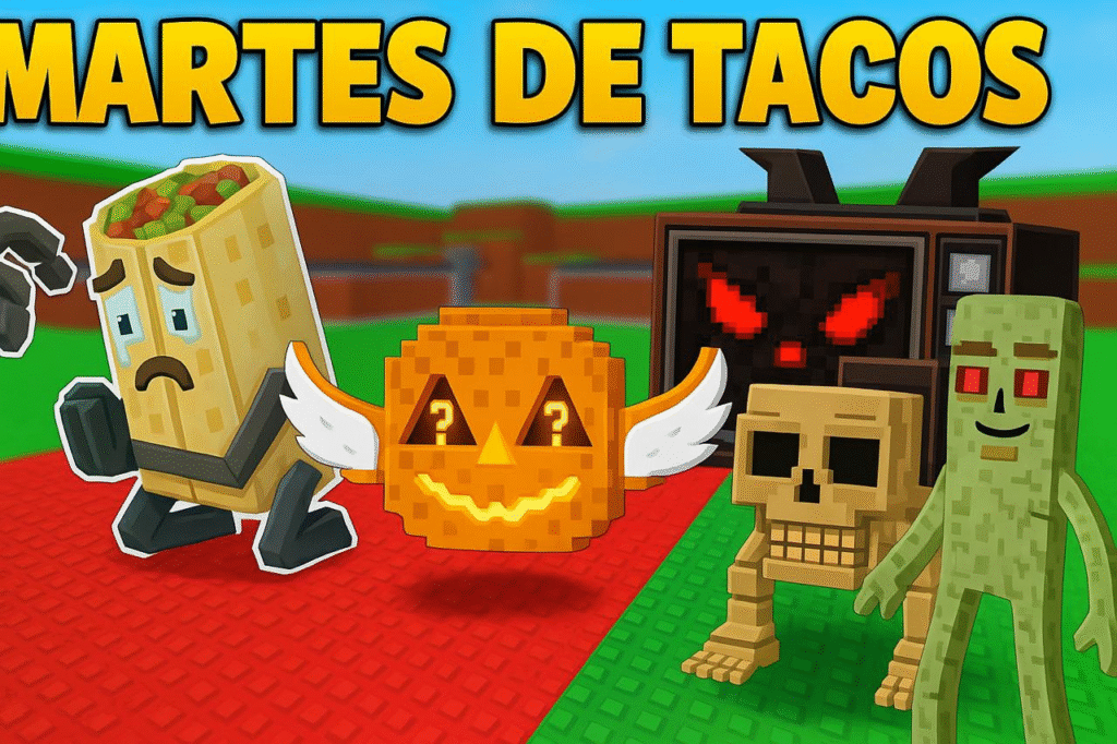 O Martes de Tacos é um evento semanal do Roblox, geralmente às terças-feiras, que oferece desafios temáticos, recompensas exclusivas e itens raros chamados “Tacos”. Os jogadores precisam completar tarefas dentro do jogo para ganhar Robux, gemas, itens cosméticos ou acessórios de avatar.